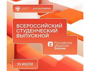 10 июля по всей стране пройдет марафон «Всероссийский студенческий выпускной». Мероприятие организованно Минобрнауки России совместно с Росмолодежью и Российским обществом «Знание». Праздник объединит десятки тысяч выпускников учебных заведений нашей страны.