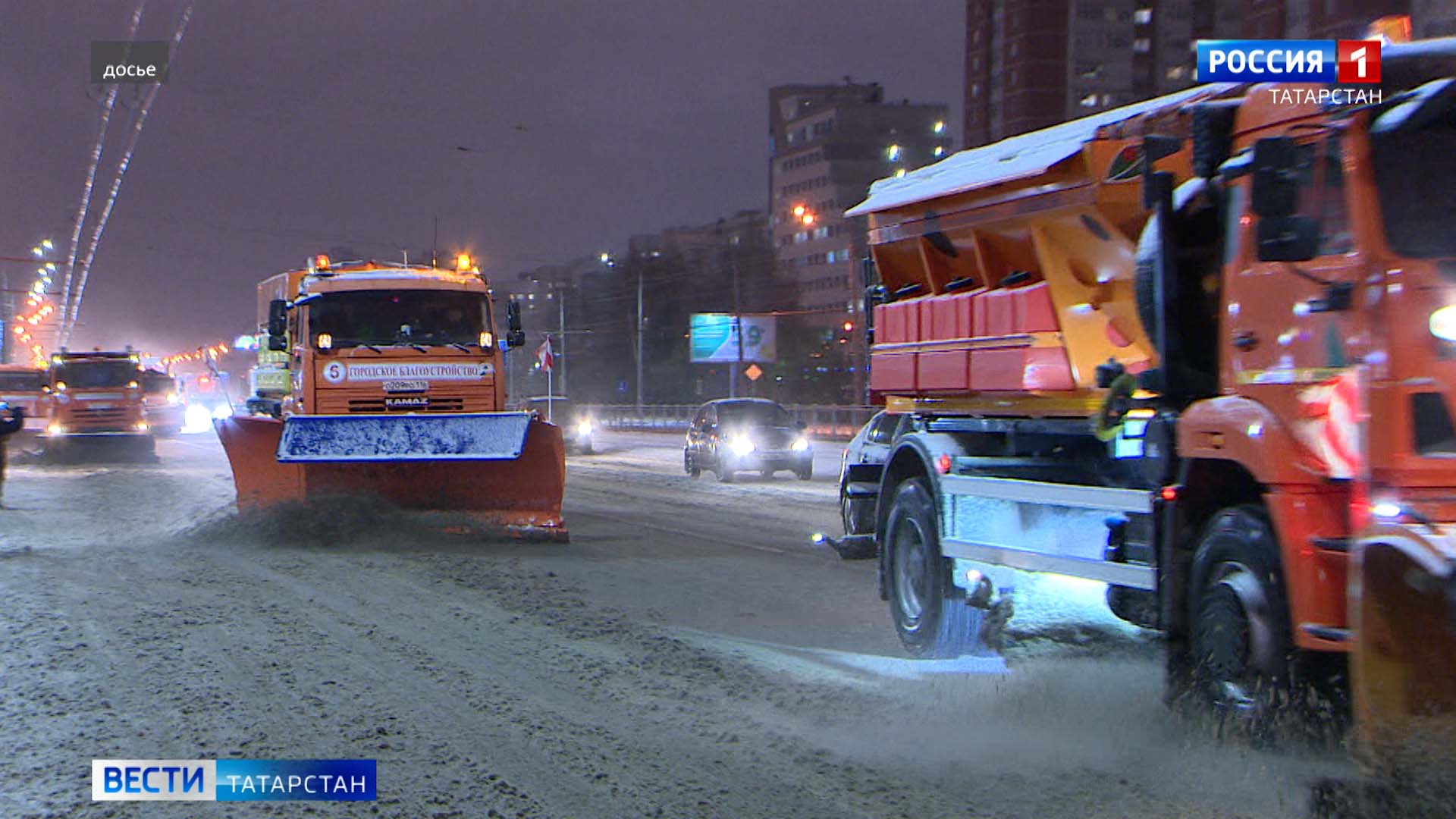 Когда город засыпает, просыпаются коммунальщики. Сразу несколько бригад ровной колонной едут по основным улицам Казани. Эти кадры сняты после первого снегопада. С того момента все дорожники перешли на усиленный режим работы.