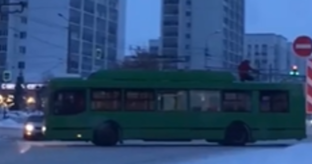 Фото: скриншот Сотрудники Госавтоинспекции Казани признали виновным водителя троллейбуса, который перевозил человека на крыше общественного транспорта.