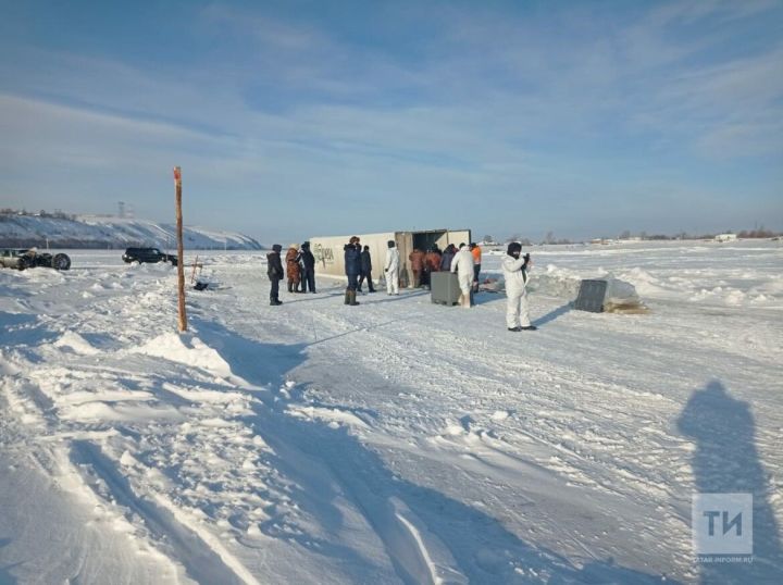 Многотонник удалось разгрузить, в кузове был каучук. В Татарстане вытаскивают фуру, которая накануне провалилась под лед на переправе через Каму в Мамадышском районе.