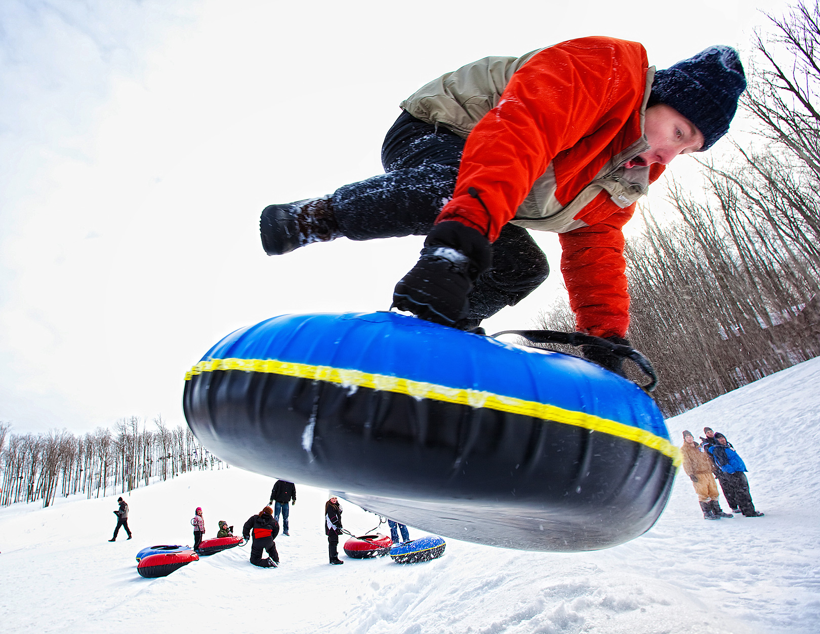 Все это удалось зафиксировать камерам наружного видеонаблюдения. Не остановил людей и залог, который должен оставлять каждый желающий прокатиться на тюбинге.