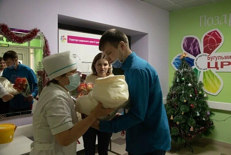 Родителям первой новорожденной малышки в Бугульме вручили подарки на выписке