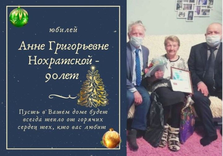С юбилеем именинницу поздравили глава города Лаишева Виктор Арефьев, председатель местного отделения «Союза пенсионеров России» Лидия Грабалина, председатель Совета ветеранов района Рашат Булатов и заместитель руководителя Исполнительного комитета района Марс Валеев. Они передали теплые слова приветствия главы Лаишевского района Ильдуса Зарипова, который, в частности, отметил, что жизненный путь Анны Григорьевны Нохратской является примером трудолюбия и поводом для гордости.