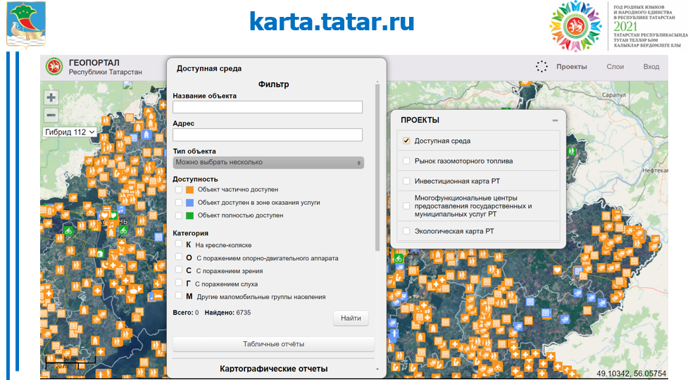 В настоящий момент на карту доступности сайта karta . tatar . ru нанесена информация по 324 объектам. Любой человек может зайти на сайт и посмотреть, насколько доступен для него тот или иной объект.
