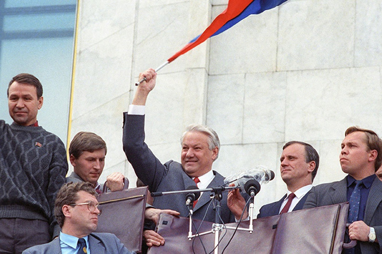 Ельцин и Бурбулис во время августовского путча 1991 года Фото: Kremlin.ru