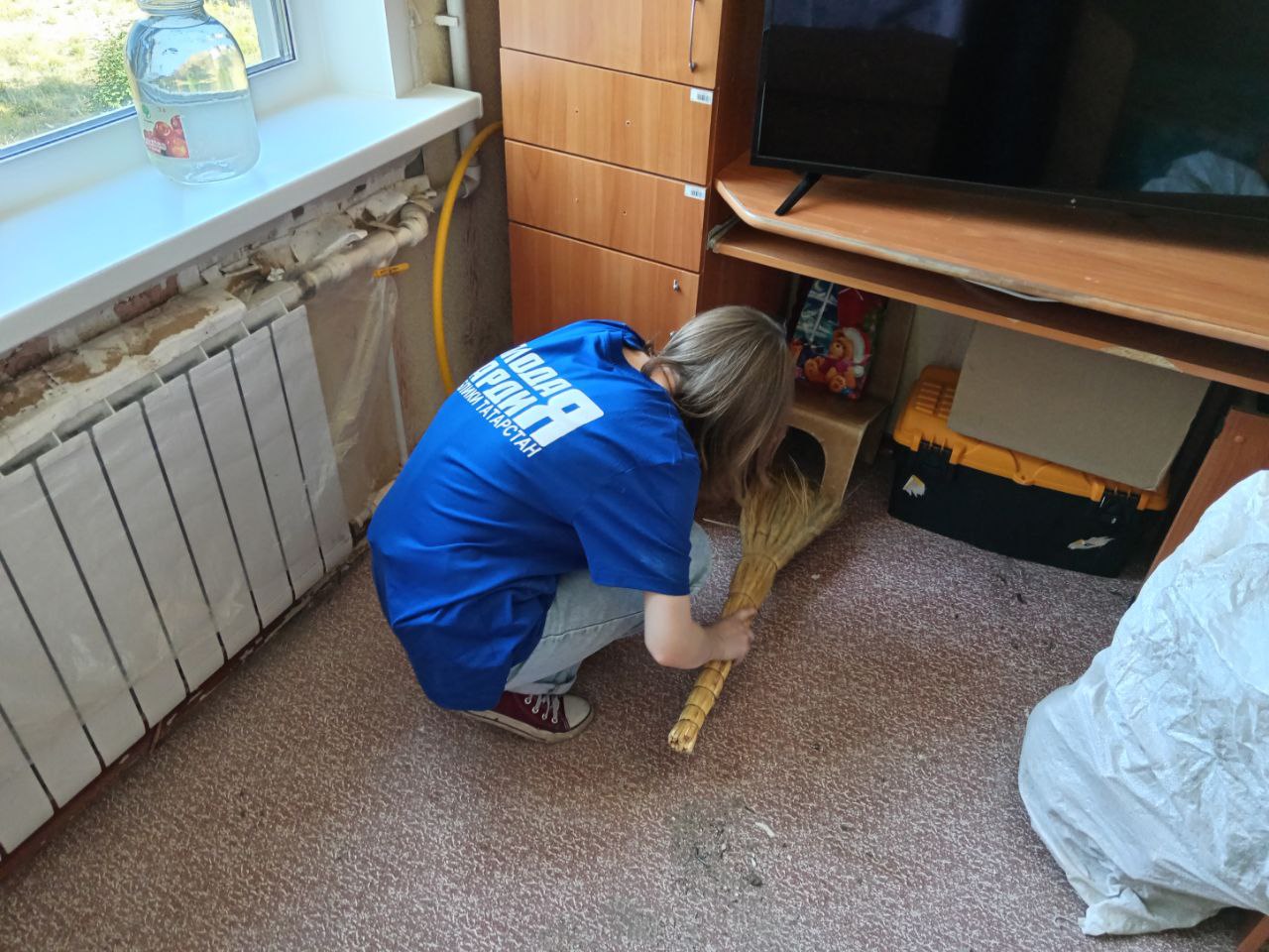 Молодогвардейцы Елабужского района привезли необходимые стройматериалы для ремонта и средства для уборки квартиры. В ходе помощи активисты демонтировали старое окно, убрали мусор и поставили новое пластиковое окно, а также помогли убраться в квартире и выкинуть мусор.
