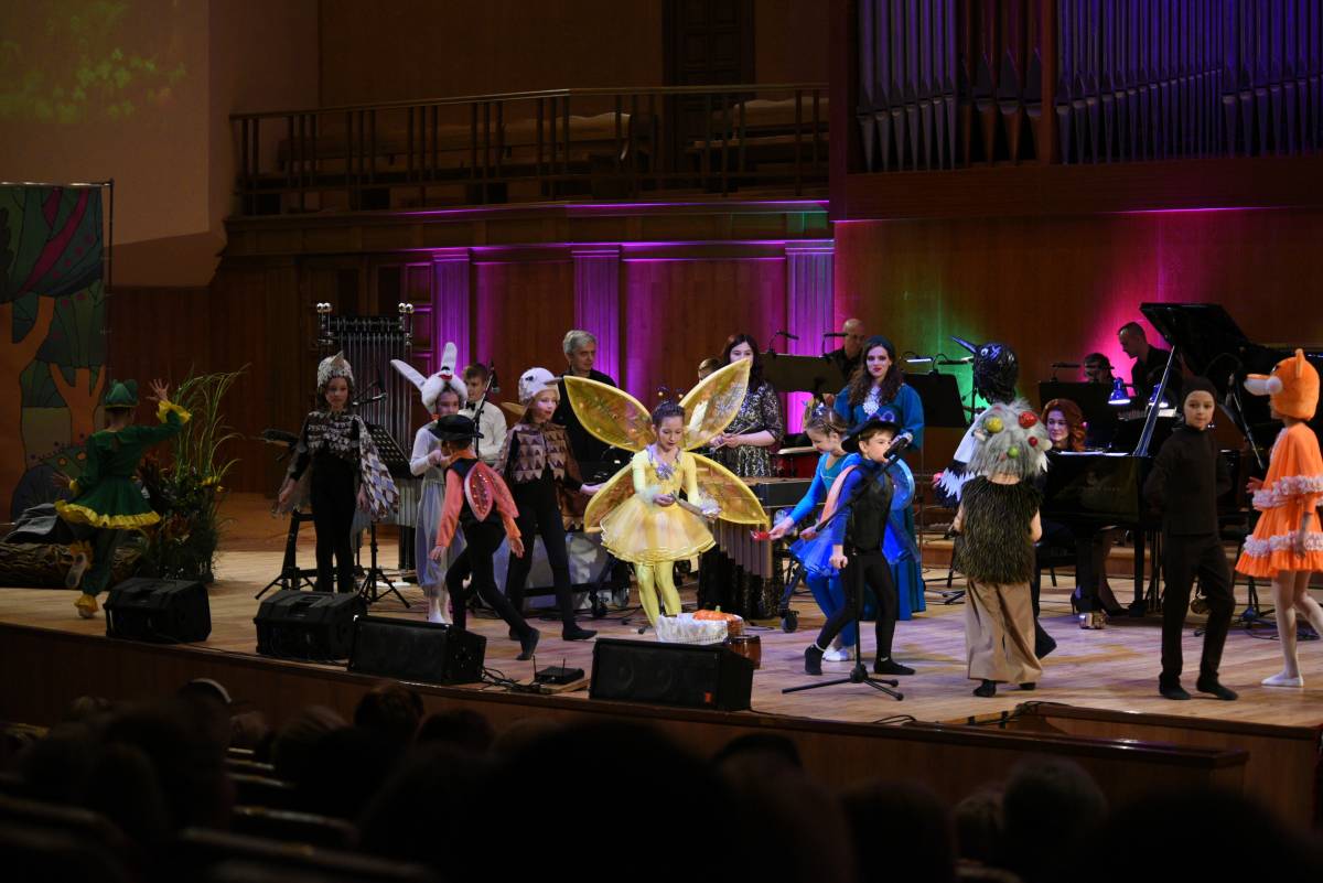 На сцене Органного зала выступили не только солисты, но и друзья центра. Главным сюрпризом стала премьера – дебют инклюзивного театра, выступление ансамбля ударных инструментов центра «Чудо-дети».