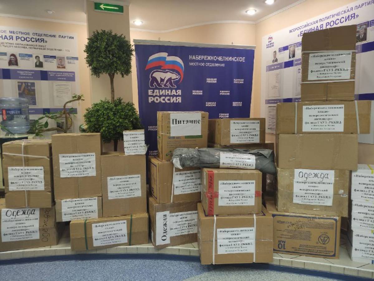 Набережночелнинское отделение партии «Единая Россия» предоставило грузовой автомобиль, который доставит эту гуманитарную помощь в региональное отделение партии в Казань.