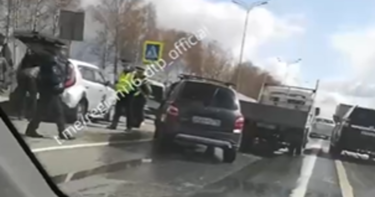 Согласно «Яндекс.Картам», ДТП произошло недалеко от поселка Грузинский. Из-за столкновения образовалась небольшая пробка, так как автомобили находятся в левом и среднем рядах.