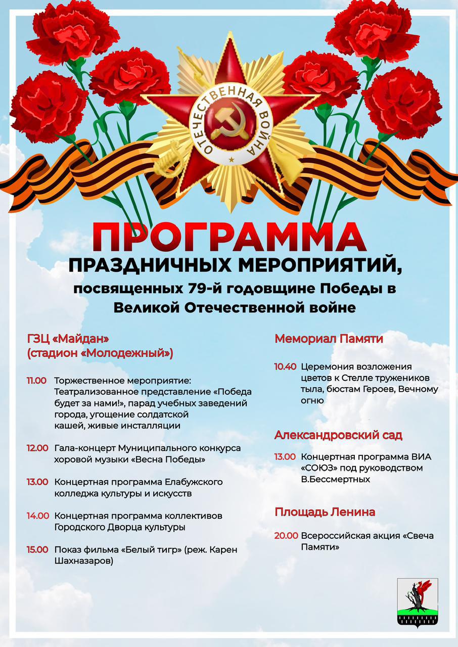 В Елабуге ко Дню Победы в связи с неблагоприятными погодными условиями появились изменения в афише мероприятий.