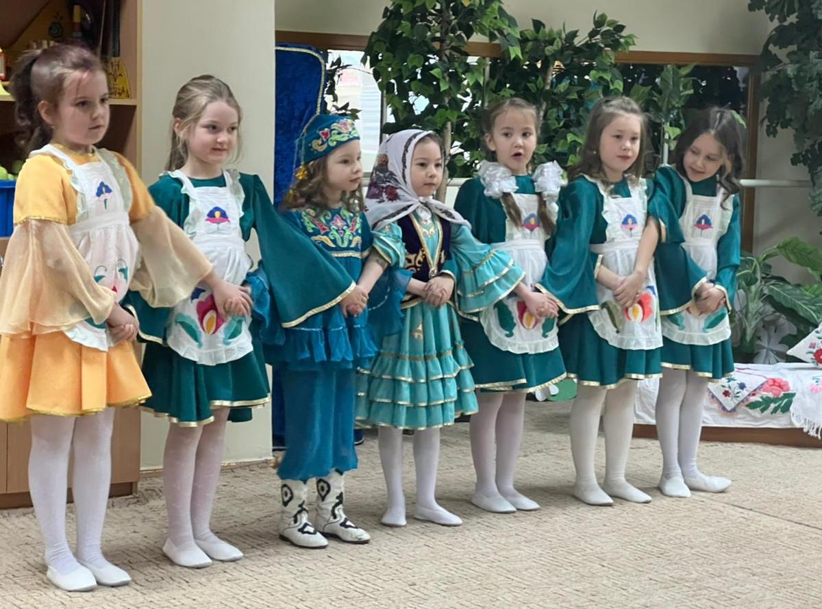 Дети подготовительных групп №1 и №2 разучили диалоги и песни на татарском языке. И с интересом участвовали в татарских народных играх «Капкалы», «Чума үрдәк, чума каз», «Куш кулым». Родители пели и плясали вместе с детьми.