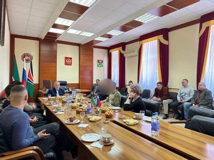 Сегодня в здании мэрии Глава Лениногорского района Рягат Хусаинов встретился с мобилизованными, которые приехали из зоны спецоперации в отпуск.