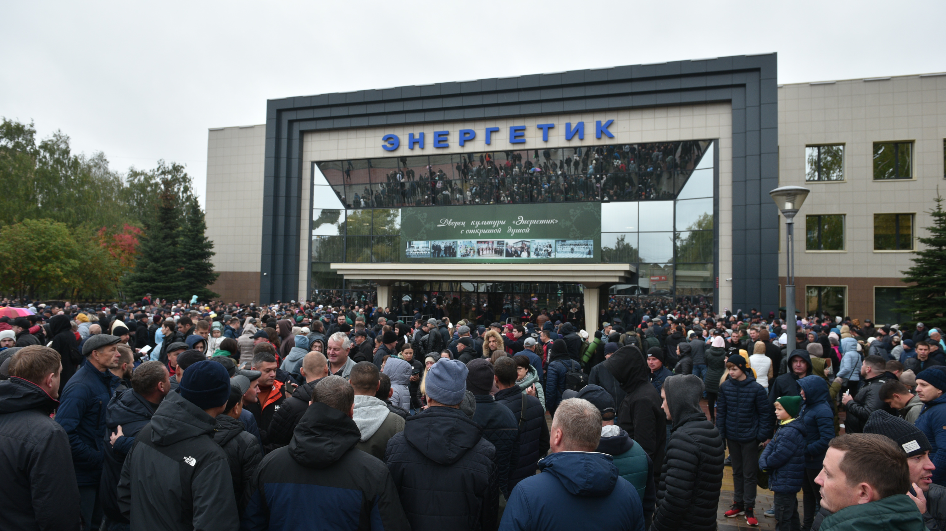 Сегодня на площади перед дворцом культуры "Энергетик" собрались родные и близкие, друзья и коллеги военнообязанных, призванных в рамках частичной мобилизации из Набережных Челнов.