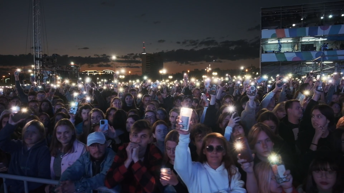 К концу второго, завершающего дня грандиозного феста территория проведения масштабного музыкального действа заполнилась тысячами зрителей и с наступлением темноты вмиг зажглась фонариками телефонов.