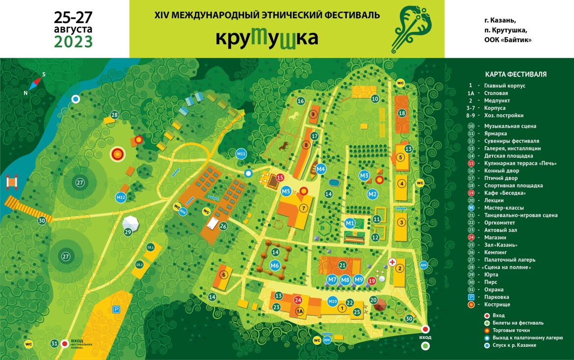 Фестиваль будет состоять из десятка площадок, но самой громкой из них, естественно, станет музыкальная сцена. На ней выступят музыканты, которые представят русскую и татарскую культуру, будет музыка Средиземноморья, будут коллективы с Урала и Сибири, с Центрального региона — Московской области и Санкт-Петербурга, будет музыка соседних регионов — Марий Эл и Чувашии.