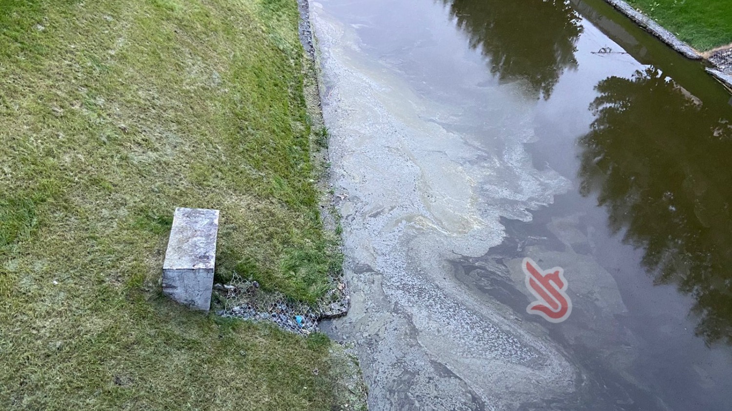 На кадрах видно, что в районе пересечения улиц Право-Булачной и Мусы Джалиля из ливневки на поверхность воды вытекает белая жидкость, оставляя «пленочный след». Стоит отметить, что осадков в тот день не было.