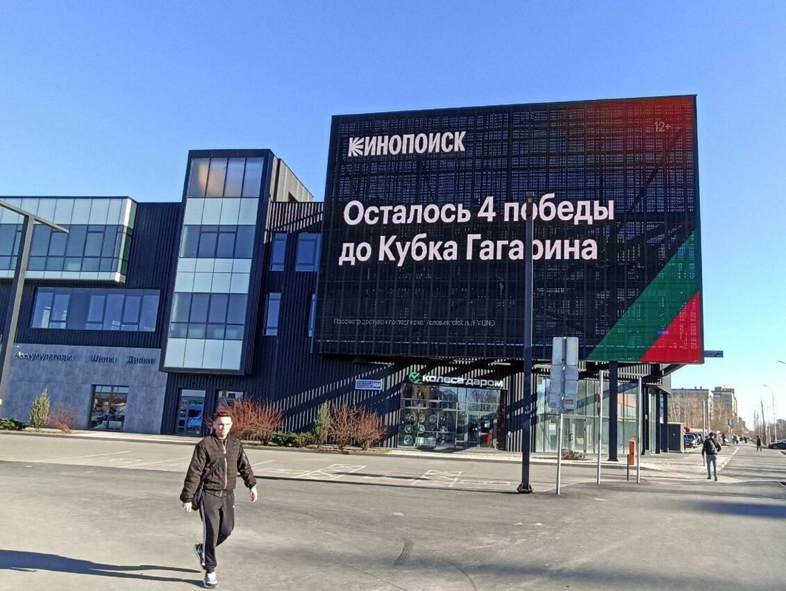 На улицах Казани появились билборды, которые будут обновляться после каждого сыгранного матча «Ак Барса» и отсчитывать победы до завоевания Кубка Гагарина. Соответствующие медиафасады разместил онлайн-кинотеатр Кинопоиск.