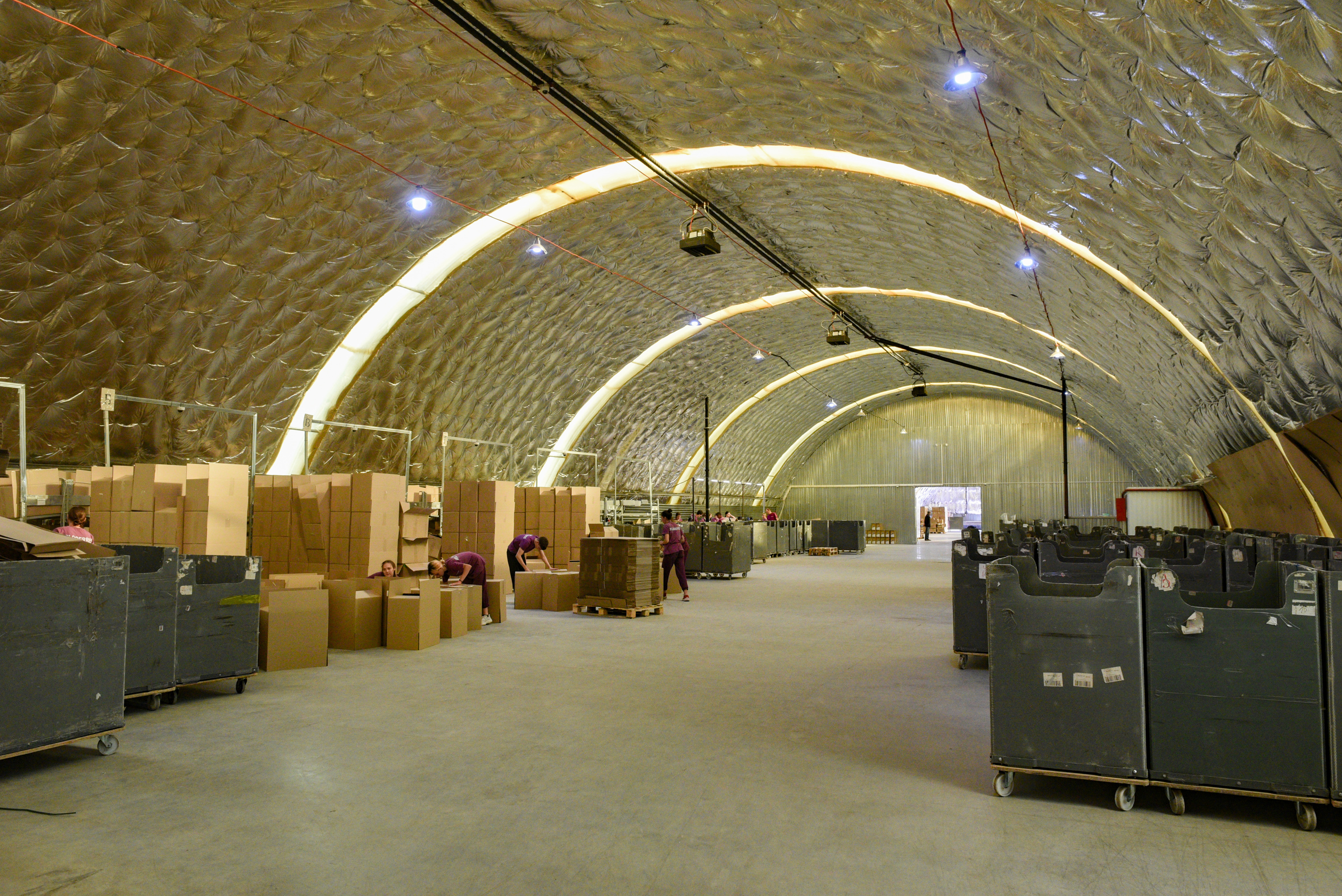 В центре работают 180 сотрудников. Большая часть работает на приемке и разгрузке товара, часть - оформляет возвраты. Работа ведется круглосуточно.