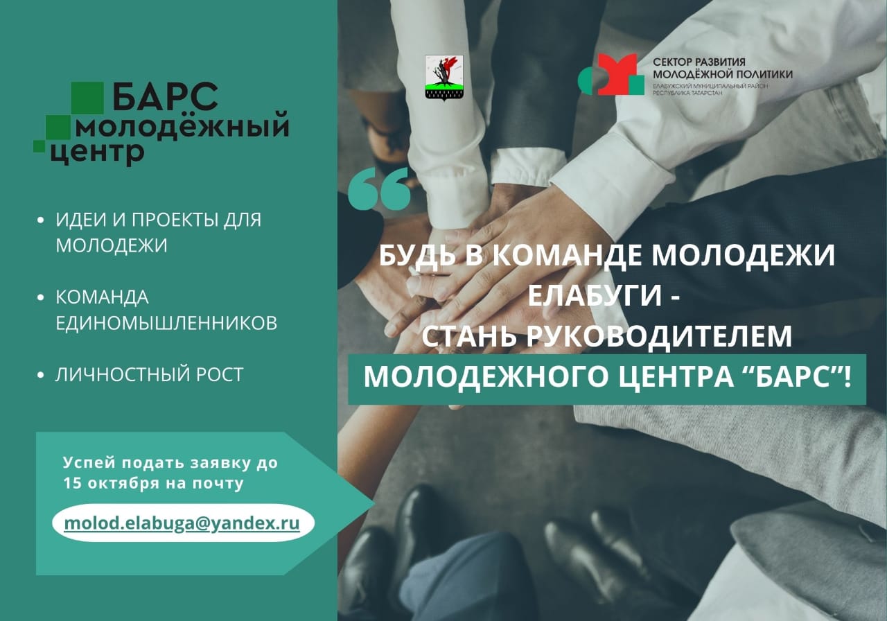 Сектор развития молодежной политики Исполнительного комитета Елабужского муниципального района объявляет конкурс на должность руководителя Молодежного центра «Барс» г.Елабуга.