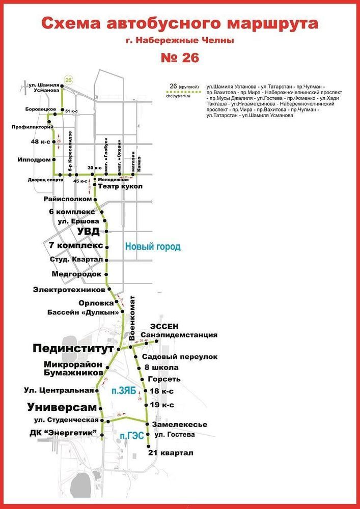 В набережных Челнах после открытия движения по новому мосту на улице Гостева с 1 сентября изменится маршрут движения автобуса №26.
