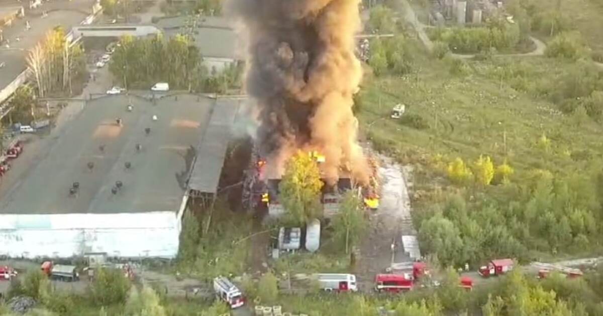 Пожар на заводе «Хитон» в Казани — видео с дрона