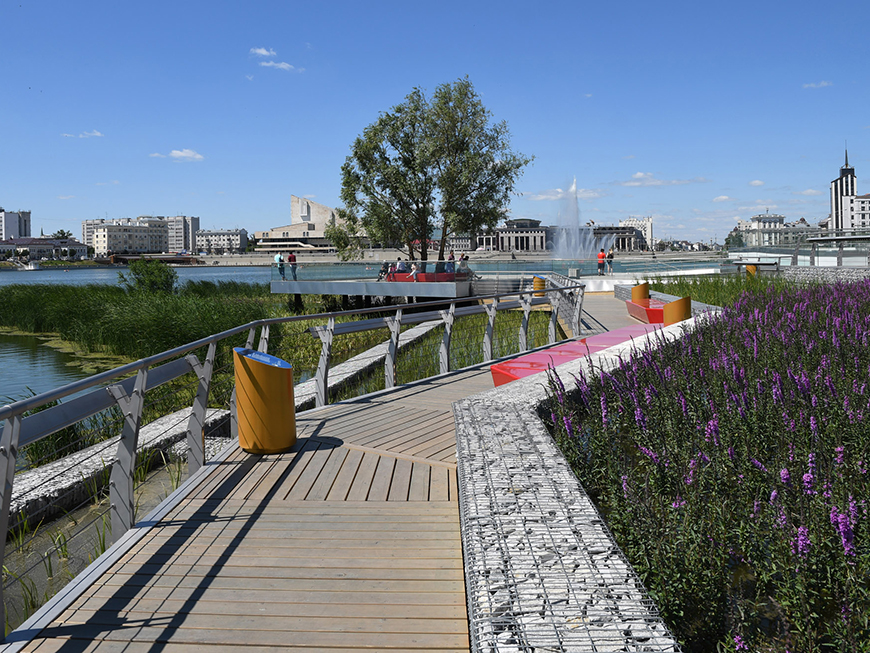 Напомним, в 2015 году прошел конкурс на разработку концепции развития набережных системы озера Кабан. Победил консорциум Turenscape+MAP, далее на базе их концепции бюро «Архитектурный десант» разработало проект. Он был реализован в рамках программы, которую курирует Институт развития городов Республики Татарстан.