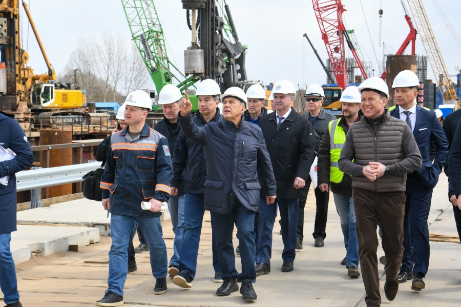 Рустам Минниханов ознакомился с ходом строительства моста в Нижнекамском районе