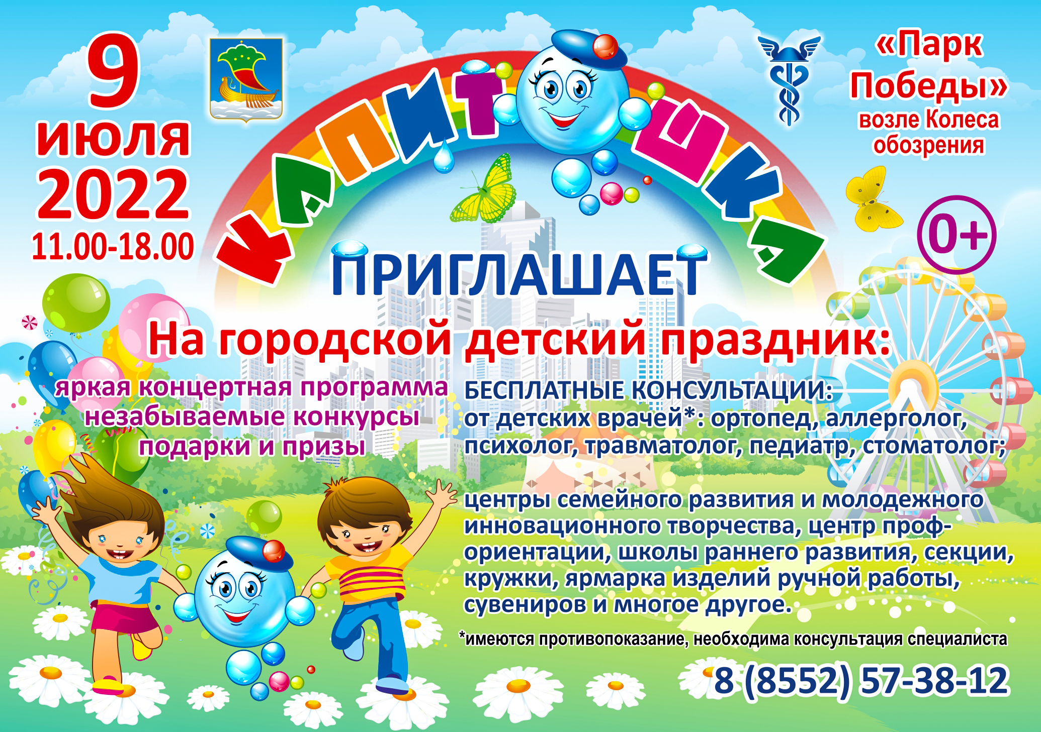 9 июля в парке Победы состоится детский праздник "Капитошка". Гостей праздника конкурсы, развлечения, призы, мастер-классы, дискотека с 11:00 до 18:00.
