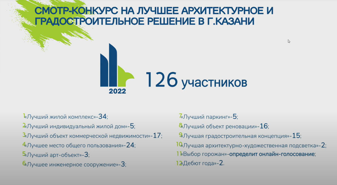 «3 декабря мы подведем итоги смотра-конкурса на лучший архитектурный объект города», - сказала Тухватуллина, уточнив, что всего на конкурс поступило 126 заявок.