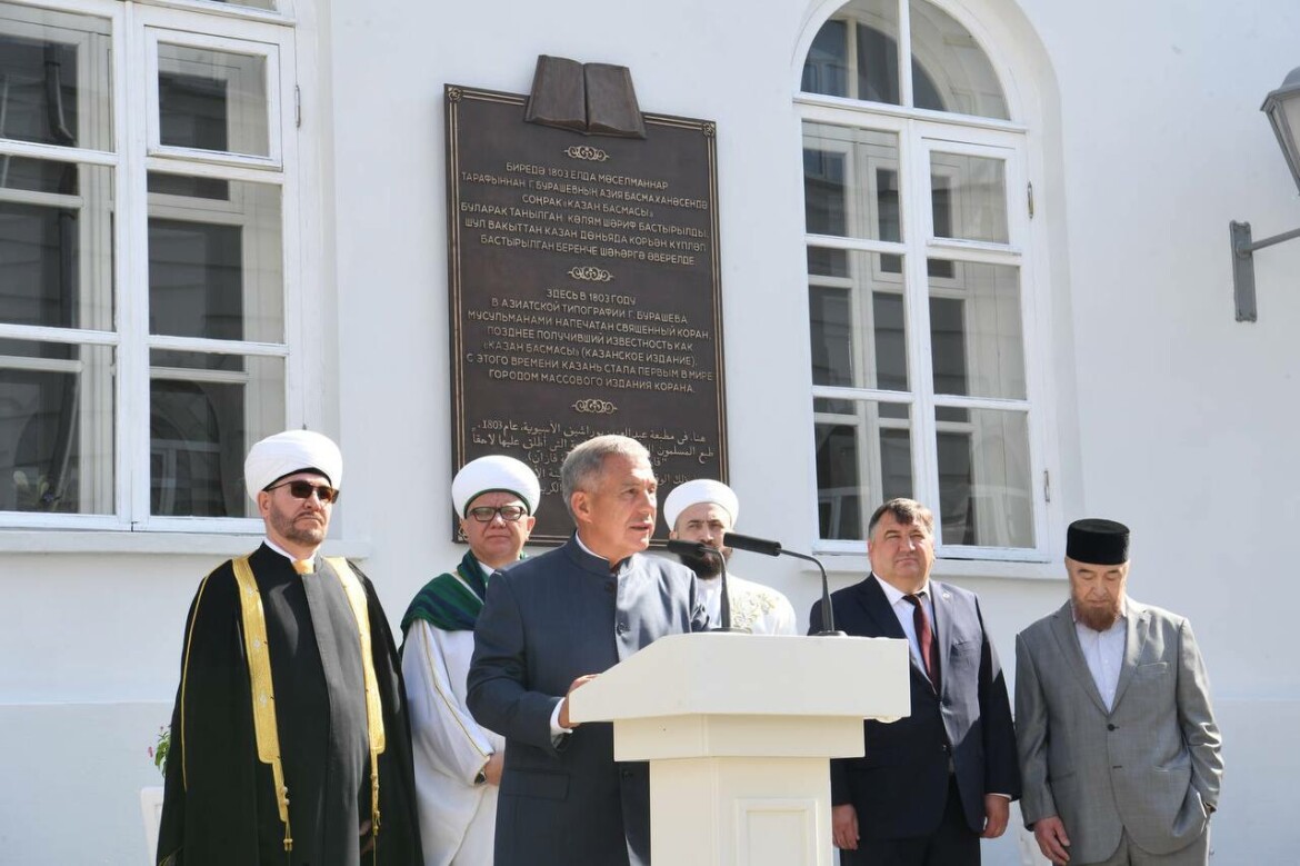 Во дворе главного здания КФУ открыли мемориальную доску в честь издания первого тиража Корана. Об этом сообщили в пресс-службе Раиса РТ.