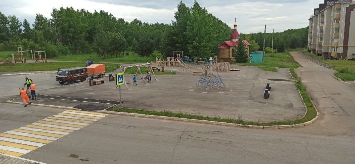 В Менделеевске устранили ямы на игровой площадке