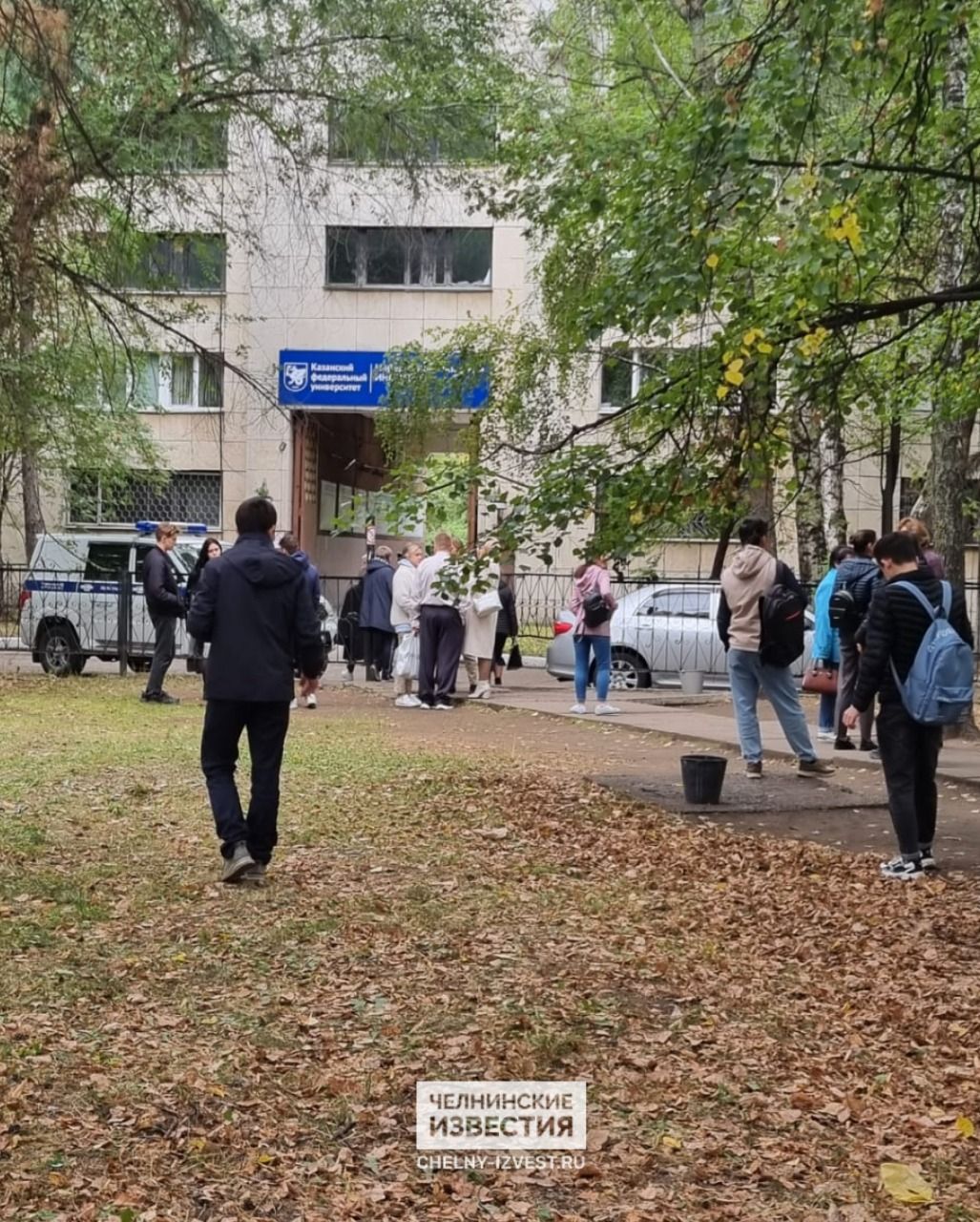 Из собственных источников «Челнинским известиям» стало известно, что административный и преподавательский состав попросили покинуть здание до 13:00. У студентов сейчас большая перемена, а следующей пары у них не будет.