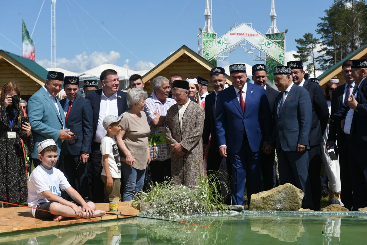 Поздравить челнинцев с национальным праздником приехали Председатель Государственного Совета Республики Татарстан Фарид Мухаметшин, руководитель Исполкома ОНФ Михаил Кузнецов. Почетных гостей встретил мэр города Наиль Магдеев . Сначала они побывали на малых майдан, которые предлагают гостям множество развлекательных программ.