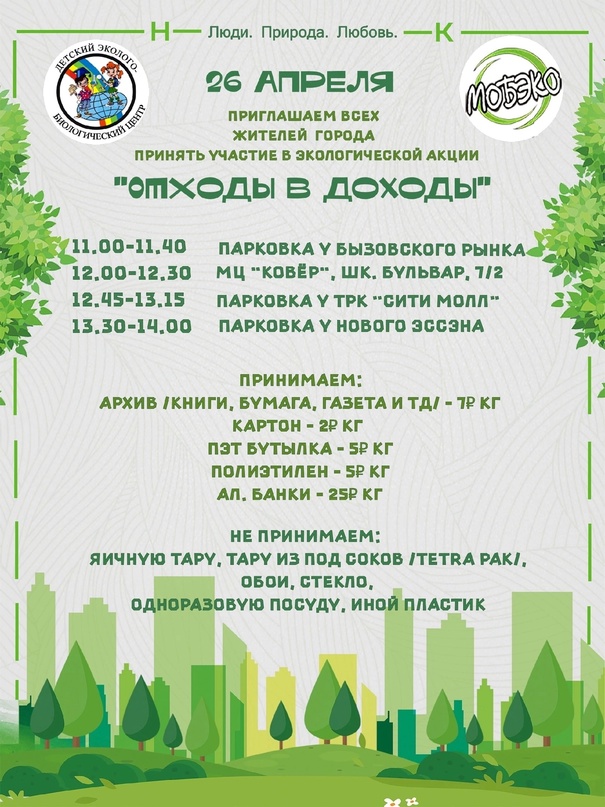 26 апреля в Нижнекамске пройдёт экологическая акция «Отходы в доходы».
