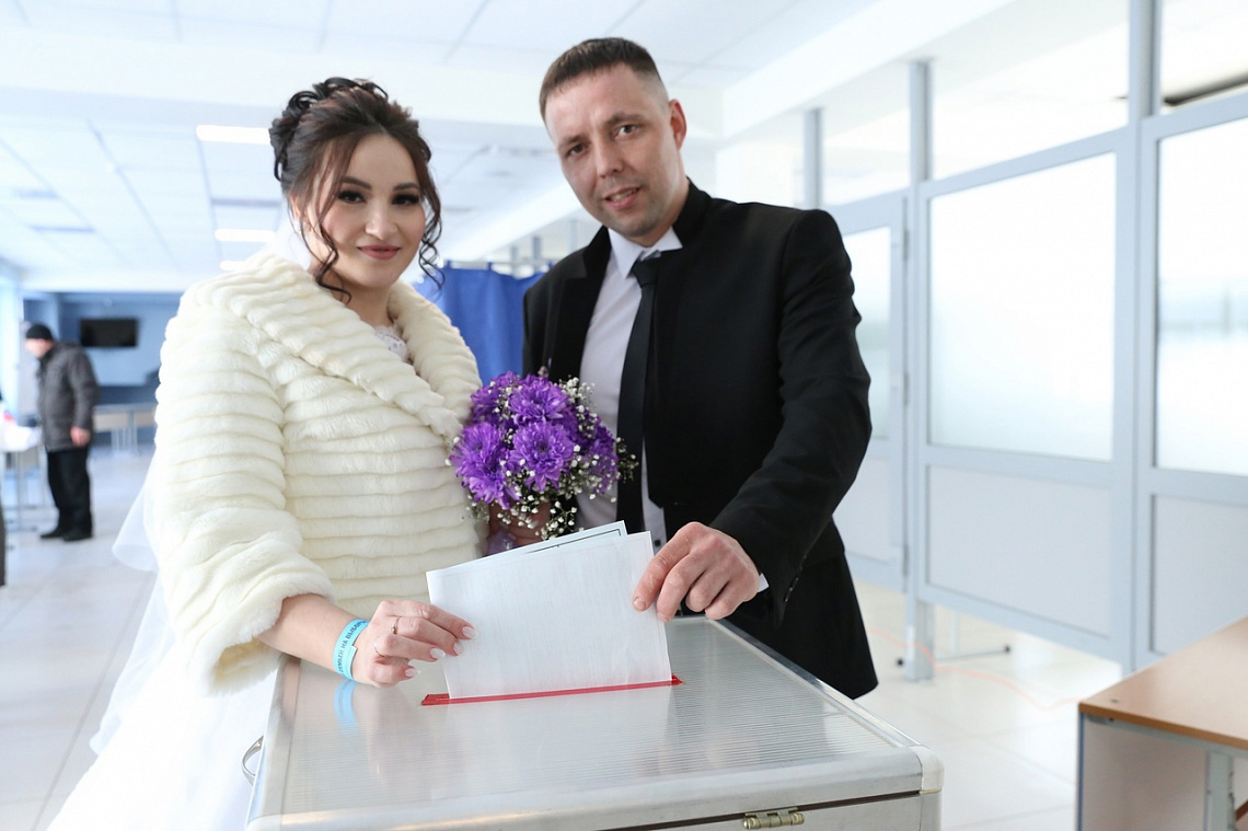 Как сообщили в Управлении ЗАГС Нижнекамского района, еще один важный шаг в своей жизни сделали сегодня нижнекамцы Руслан и Алена, теперь уже Фасхутдиновы. Прямо после регистрации брака в ЗАГСе молодожены приехали на избирательный участок, чтобы принять участие в выборах Президента Российской Федерации.