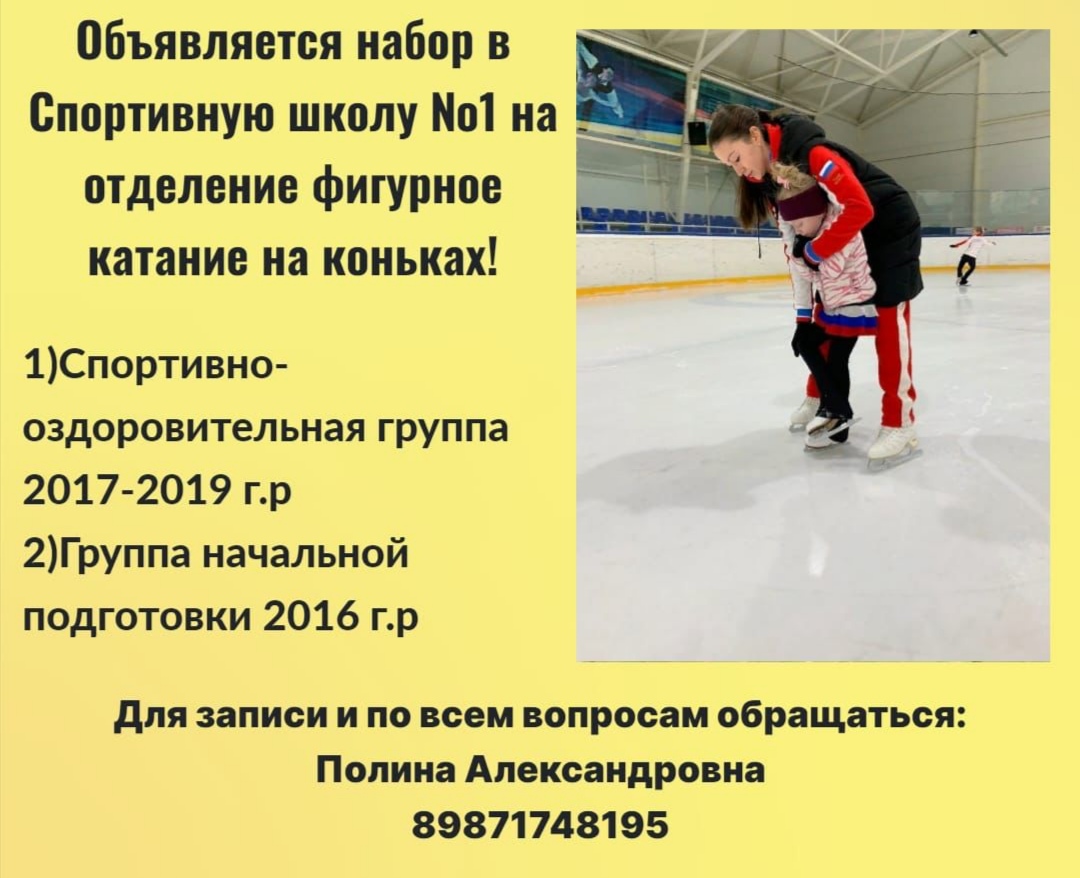 В Елабуге объявляется набор в спортивную школу № 1 на отделение: фигурное катание на коньках. Научиться держаться на льду, координировать свои движения и развить целеустремленность, волю и ответственность научит тренер. С ребятами будет работать тренер Полина Александровна. Приглашаются в группу начальной подготовки дети 2016 г.р. В спортивно-оздоровительную группу дети 2017-2019 г.р.