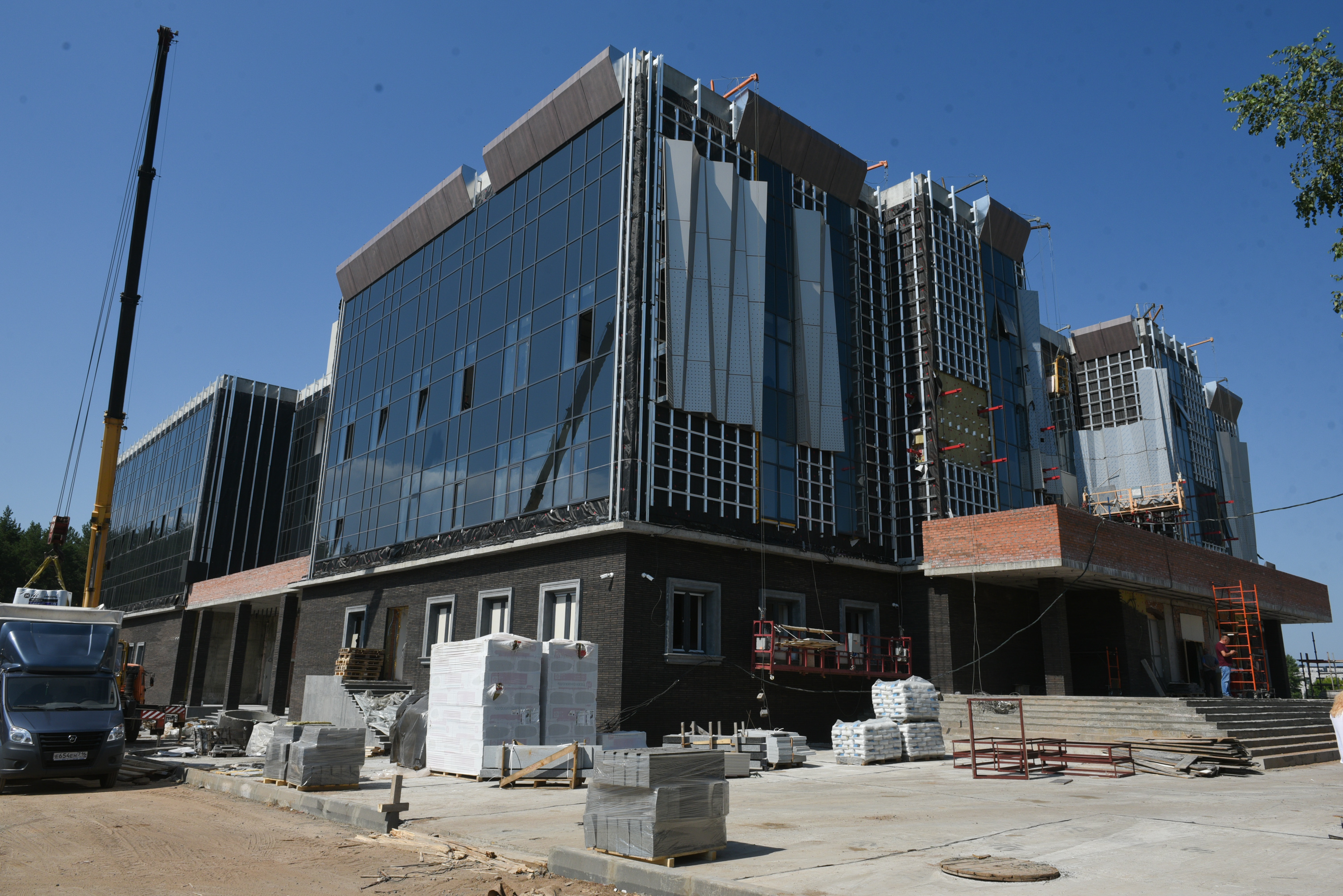 В настоящее время на строительной площадке выполняется устройство фасада, монтаж витражей, устройство внутренних инженерных сетей (электроснабжение, водоснабжение, водоотведение, отопление, вентиляция, слаботочные сети), отделочные работы (штукатурка стен) благоустройство.