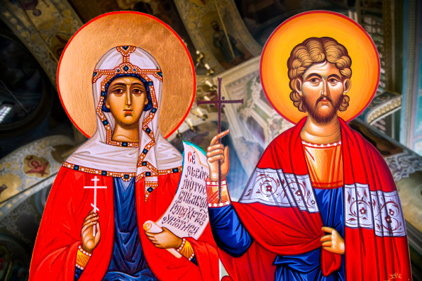Мученики Хрисанф и ДарияСвятой Хрисанф вырос в языческой интеллектуальной среде и пришёл к вере через чтение Нового Завета. Он принял Крещение от скрывавшегося от гонений священника Карпофора. После Крещения Хрисанф не скрывал, что он христианин, и открыто говорил о Христе. Отец юноши, беспокоясь, решил отвратить его от христианства через брак. Он устроил его женитьбу на Дарии, жрице Афины Паллады. Но Хрисанф обратил жену ко Христу, и супруги решили исполнить совет апостола Павла: «Время уже коротко, так что имеющие жён должны жить, как не имеющие» (1 Кор. 7:29). После смерти отца они стали жить раздельно, создав общины хранящих девство: Хрисанф — юношей, Дария — дев. Когда горожане пожаловались епарху, что Хрисанф и Дария — христиане и проповедуют безбрачие, для супругов началось время страданий за Христа.