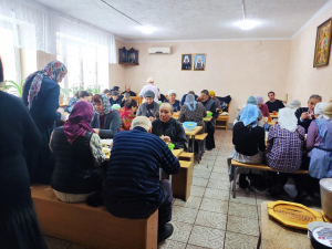 Отметим, что по благословению митрополита Казанского и Татарстанского Кирилла на приходах храмов Чистопольской епархии проходит регулярная раздача горячих обедов для всех нуждающихся. В благотворительных столовых получают питание люди различных социальных групп населения, которые по тем или иным причинам оказались в бедственном положении. Это, как правило, люди малоимущие, беженцы и бездомные. Так регулярное питание организовано в крупных городских приходах: в храме Казанской иконы Божией Матери города Чистополя, в Свято-Авраамиевском храме города Болгара и в храме Рождества Пресвятой Богородицы с. Три Озера Спасского района.