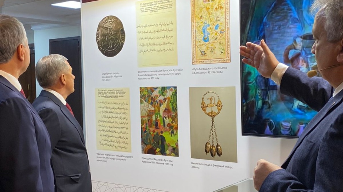 Фото: пресс-служба Казанского Кремля Минниханов посетил выставку к 1100-летию принятия ислама Волжской Булгарией Глава Татарстана Рустам Минниханов посетил выставку, посвященную 1100-летию принятию ислама Волжской Булгарией.