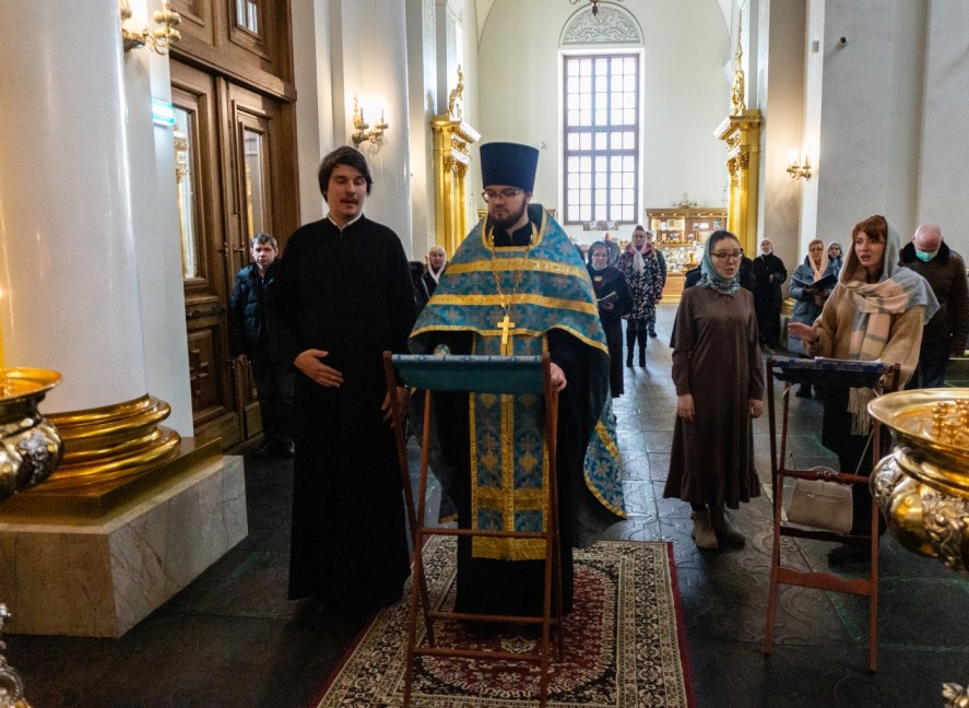 Богослужение возглавил проректор по вопросам лицензирования и аккредитации духовной школы иерей Никита Кузнецов, ему сослужил проректор по учебной работе диакон Андрей Зотин. Песнопения исполнил хор учащихся семинарии под руководством регента Ксении Савочкиной. За богослужением молились прихожане семинарского храма.