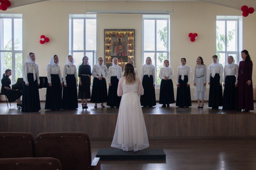 Четыре воспитанницы выпускного курса выступили с дирижированием смешанным составом хора. В исполнении хора прозвучали духовные и светские произведения известных композиторов: С.В. Рахманинова, П.Г. Чеснокова, А.Д. Кастальского и прот. А. Косолапова и других.