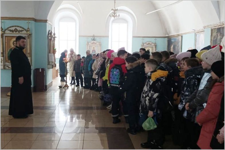 В продолжении «Урока Добрых дел» в праздник Сретения Господня учащиеся 4-х классов СОШ №1 посетили Никольский собор. Священник рассказал ребятам о храме, о устройстве православных храмов, о иконах и богослужениях.
