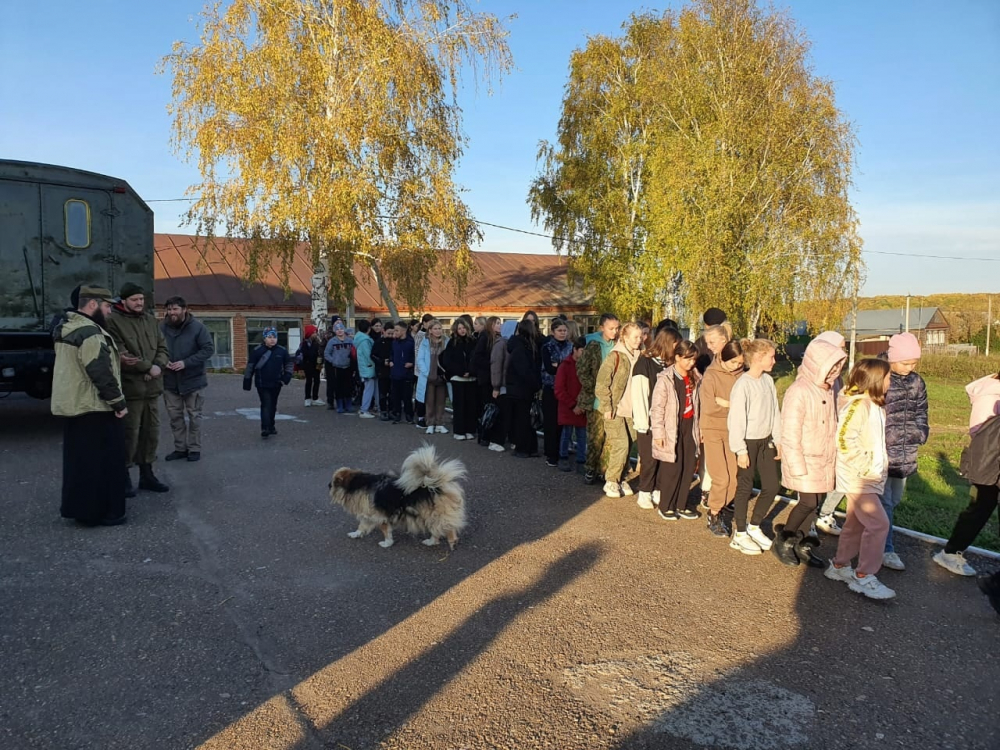 Главная цель- патриотическое воспитание подрастающего поколения. Участниками выездного мероприятия стали священнослужители, дети и их родители, активисты юнармейского отряда "Застава".