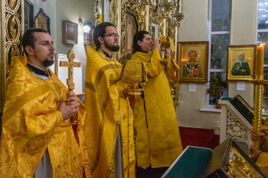 Богослужение возглавил первый проректор семинарии иерей Никита Кузнецов. Ему сослужили старший помощник проректора по воспитательной работе иерей Георгий Некрасов и проректор по учебной работе диакон Андрей Зотин.