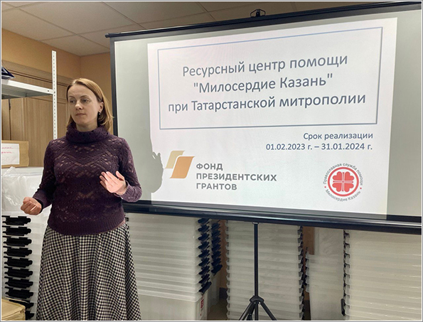 27 февраля в Татарстанской митрополии начал работу Ресурсный центр помощи «Милосердие — Казань». В стартовый день работы в помещении центра, расположенного на территории архиерейского подворья священномученика Кирилла Казанского, прошёл обучающий семинар для сотрудников гуманитарных пунктов, действующих при приходах в разных городах и сёлах Татарстана. Занятие провела руководитель службы помощи нуждающимся Казанской епархии «Милосердие — Казань» Ольга Варганова, сообщает сайт Татарстанской митрополии.