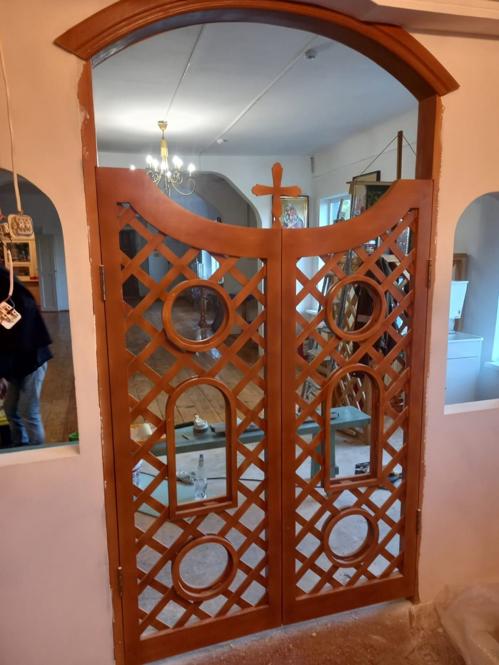 Массив иконостаса декорирован резными деталями. Объемная резьба выполнена вручную.