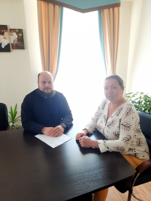 Сегодня на территории районного Дома культуры "Мирас" пос. Красный Ключ состоялась встреча директора учреждения Розы Хасановой с руководителем грантового проекта архиерейского подворья в честь св. прав. Иоанна Кронштадтского иеродиаконом Мефодием (Копьевым).