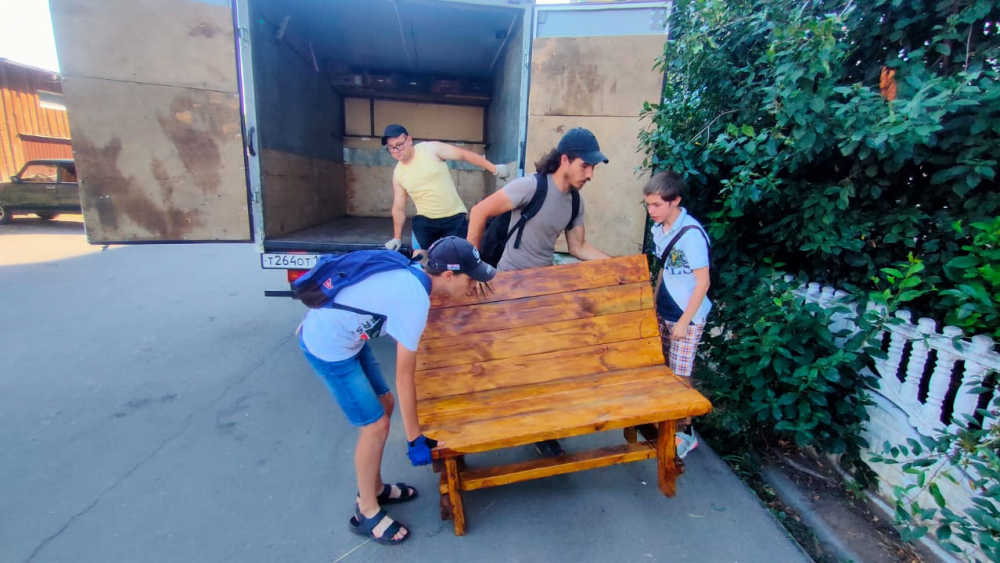 Воспитанники приходского столярного кружка облагоустраивают общественные места