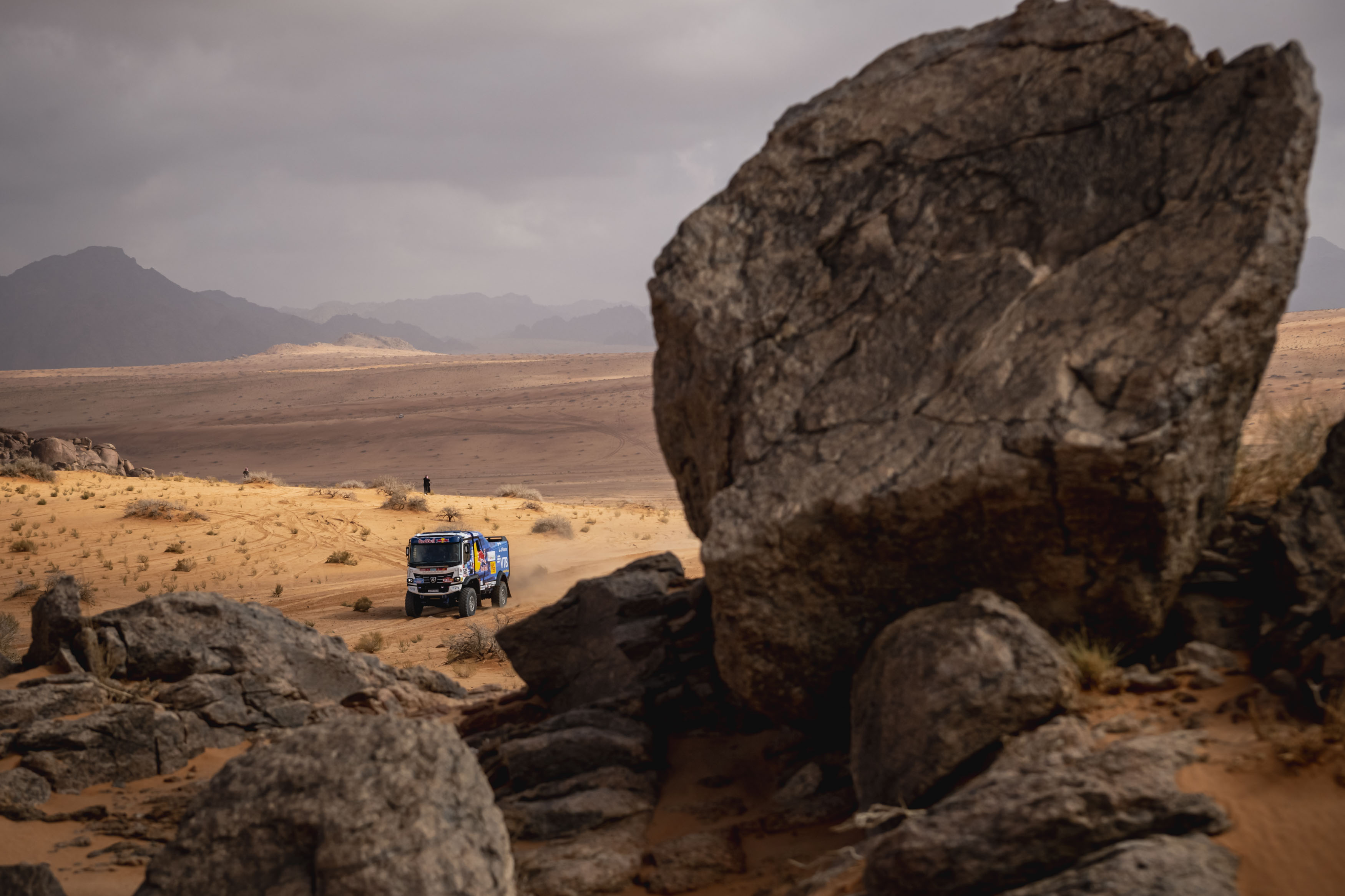 333-километровый участок стал первым настоящим испытанием после вчерашнего пролога. Дистанция почти полностью состоит из песков и дюн с небольшими земляными вкраплениями на фоне величественных гор. Трасса, проложенная в окрестностях города Хайль, полна коварных навигационных задач, так что здесь на первый план выходят штурманы.